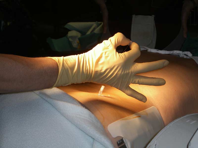 Técnica. Se introduce una cánula (aguja), de diferente tamaño según la zona a tratar, normalmente cerca de un nervio en el territorio doloroso, y una vez localizado se administra calor. La localización se realiza mediante intensificador de imágenes (RX) y estimulación nerviosa sensitiva y motora. Durante el procedimiento se percibe una corriente eléctrica (estimulación sensitiva) y una fasciculaciones (estimulación motora) en el área tratada que deberían reproducir el dolor. En ocasiones se puede necesitar contraste.